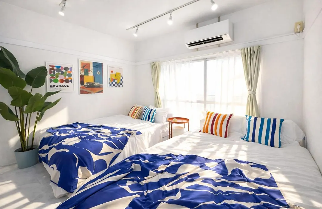 The accommodation is around 800 metres from Shinjuku-nishiguchi underground station and right near Shin-Okubo railway station.